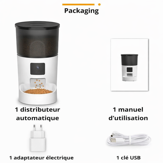 Distributeur automatique de croquettes connecté avec camera et micro pour chat